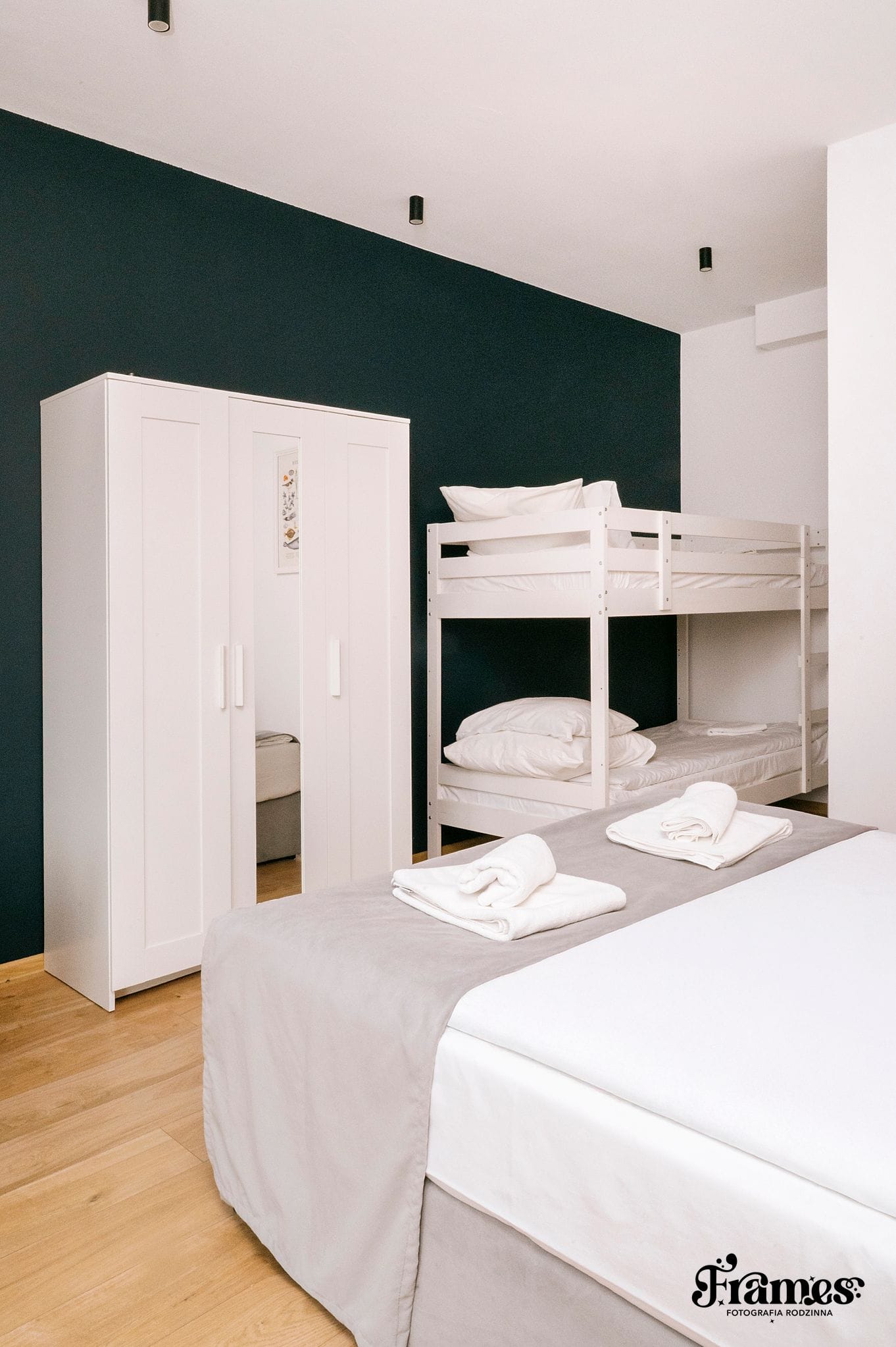 - (łóżko małżeńskie + duże łóżko dla dzieci + łóżeczko dla dziecka do 2 lat)